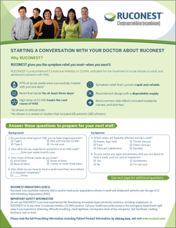 If you have any questions, our team of experts is available to provide assistance. Our priority is your well-being. Please call RUCONEST SOLUTIONS for more information at 1-855-613-4HAE (4423).